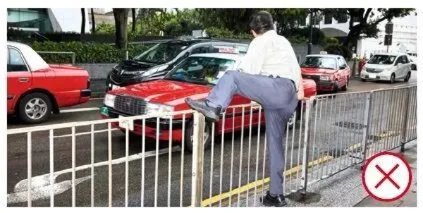 不得攀越或穿过任何路旁护栏或行人防护栏横过马路。