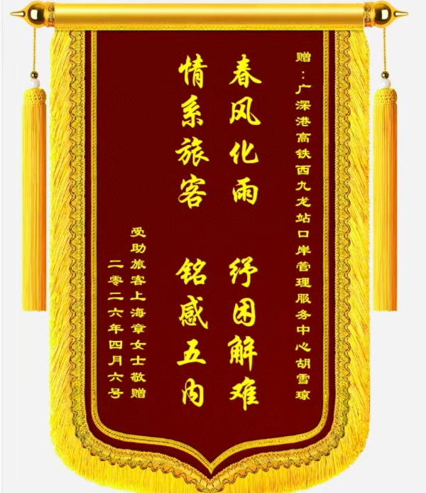 一面锦旗,一份小红书笔记,承载的是旅客对西九龙站口岸志愿服务的信赖与认可。这样的暖心场景在西九龙站口岸的各个角落不断上演。在深圳市口岸办的部署下,西九龙站口岸管理服务中心已开展“深港同心 伴您同行”品牌系列志愿服务30余场,累计服务上万名旅客。
