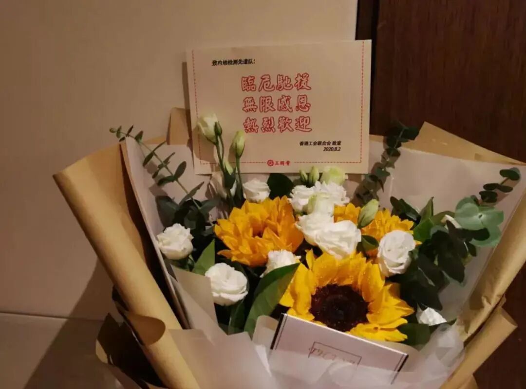 8月2日下午,“内地核酸检测支援队”7名“先遣队”队员从深圳湾口岸过关前往香港,在下榻酒店受到香港各界的热烈欢迎。