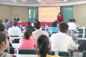图为:廖明中副研究员到市口岸办作深圳经济转型专题辅导