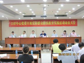 会上,中心党委书记、总经理潘建生作了动员讲话:他要求全体党员干部充分认识党的群众路线教育实践活动的重要意义,增强贯彻群众路线的紧迫感和责任感,整个活动要贯穿照镜子、正衣冠、洗洗澡、治治病的总要求,他强调“深入开展群众路线教育活动,不仅是加强中心党组织的能力建设和作风建设的迫切要求,也是进一步增强中心持续发展软实力,全面提升口岸管理服务经营水平、确保口岸安全畅通和企业健康发展的思想保障,是中心当前的一件大事”。他提出:开展教育实践活动要抓住为民务实清廉的要求,突出加强作风建设的重点,落实“四个坚决反对”,克服妨碍中心健康发展的难点,推进口岸管理服务经营工作上台阶。
